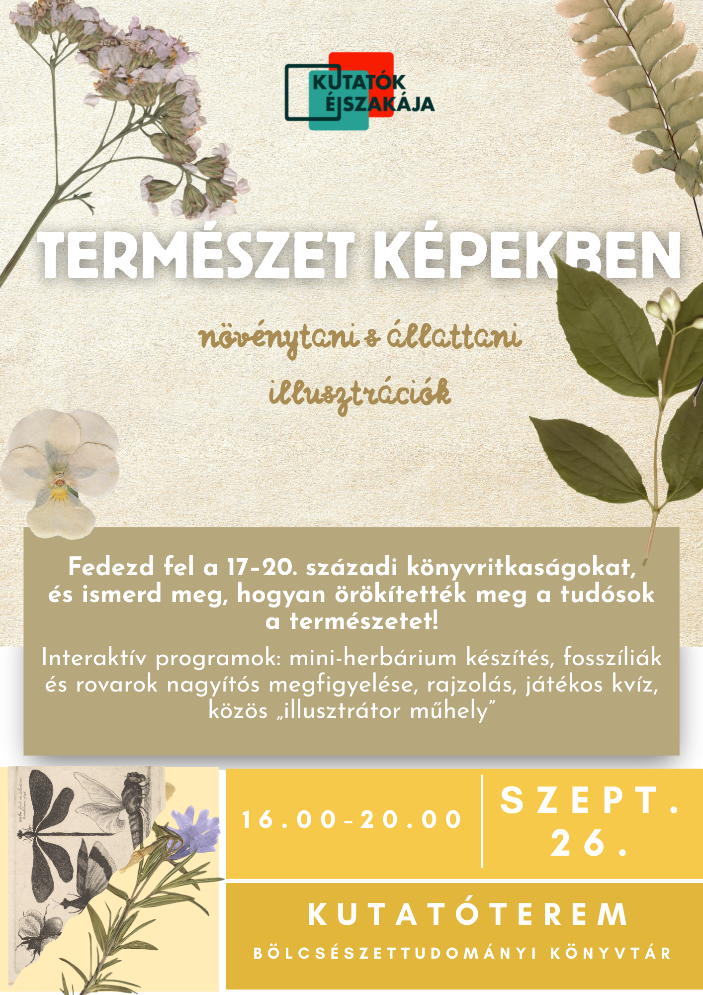 A Debreceni Egyetem Egyetemi és Nemzeti Könyvtár különleges időutazásra hívja a látogatókat. A 17. századtól a 20. század elejéig megjelent könyvritkaságok lapjain keresztül fedezhetjük fel, miként ábrázolták a tudósok és művészek a természetet az elmúlt évszázadokban. A kiállítás bemutatja, hogyan alakult át a természet illusztrálása a festményszerű, szimbolikus ábrázolásoktól a részletgazdag, tudományos pontosságra törekvő képekig. A tárlat ritkaságai között látható többek között Ulisse Aldrovandi 1613-as madártani munkája, Hendrik van Rheede Hortus Indicus Malabaricus című, 1683-ban kiadott botanikai atlasza, Ernst Haeckel ikonikus Kunstformen der Natur albuma, valamint a magyar tudománytörténet gyöngyszemei, például Diószegi Sámuel és Fazekas Mihály Magyar Fűvész Könyve.